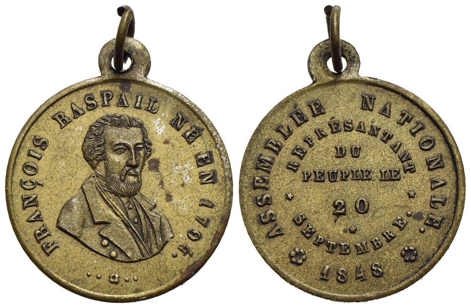 FRANCIA - Seconda Repubblica (1848-1852) - Medaglia - 1848 - Assemblea nazionale - Busto a d. di Francois Raspail - R/ Scritta Ø: 24 mm. - AE Con appiccagnolo e anella