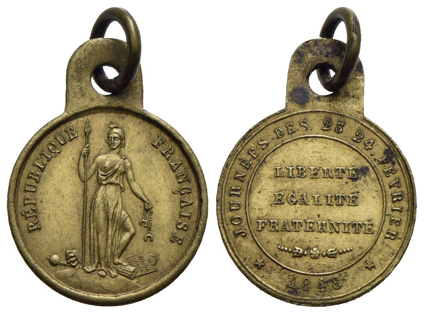 FRANCIA - Seconda Repubblica (1848-1852) - Medaglia - 1848 - Libertè, egalitè, fraternitè - Allegoria della Repubblica - R/ Scritta Ø: 16 mm. - AE Con appiccagnolo e anella