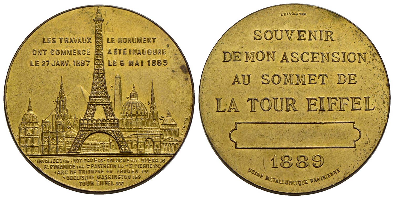 FRANCIA - Terza Repubblica (1870-1940) - Medaglia - 1889 - Souvenir della salita al 1 e 2 piano dell