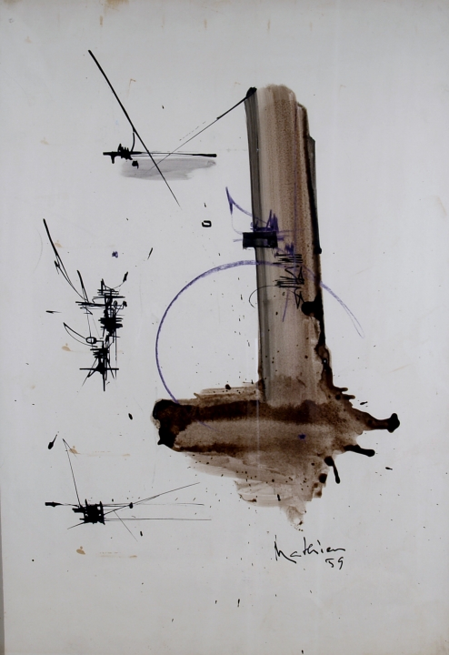 MATHIEU GEORGES (Boulogne Sur Mer 1921) "Senza titolo" 1959 China e seppia su...