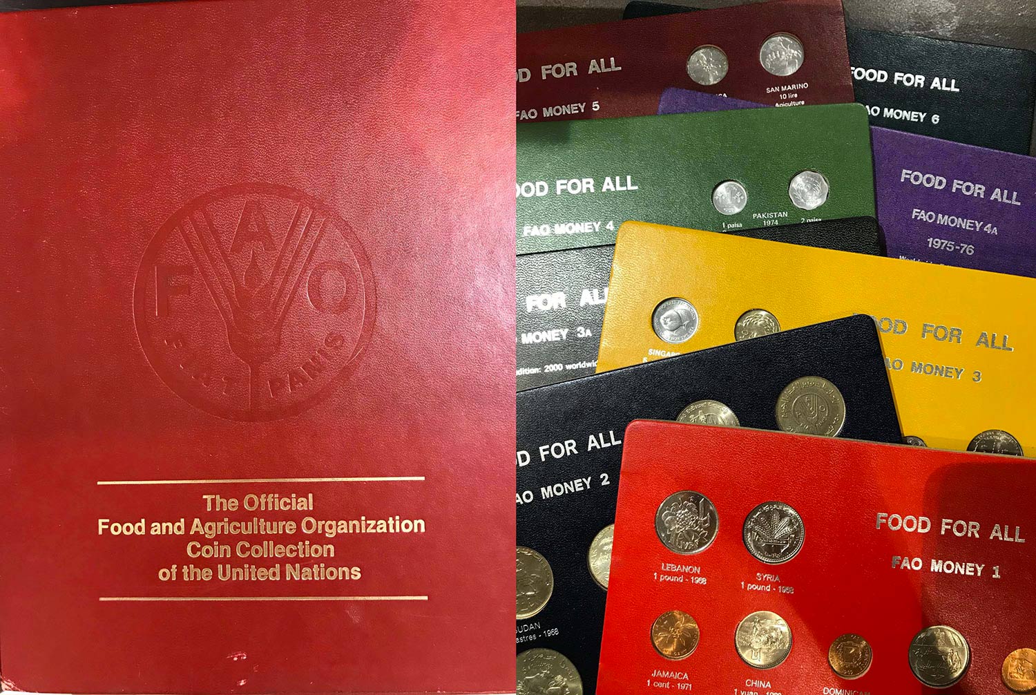 Estere - FAO - "FOOD FOR ALL" Coin Collection of the United Nations - Set di otto pannelli, 143 monete - In custodia originale rigida Insieme molto interessante oltre che raro da trovare completo