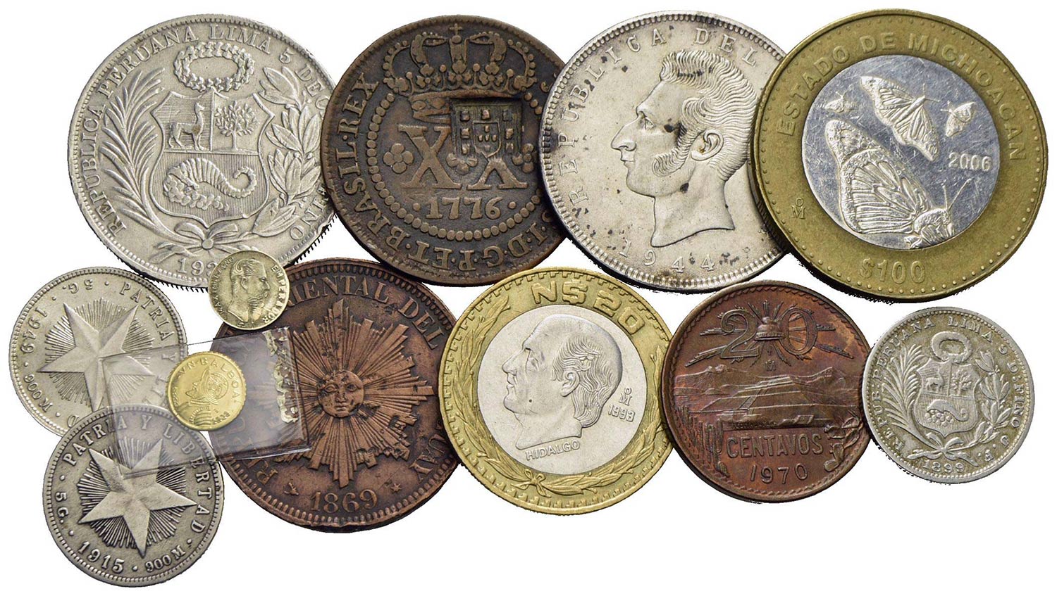 Estere - SUD AMERICA - Lotto di 12 monete di cui 5 Ag. e 1 Au 8ct. - Si nota 20 reis 1776<br>BB÷qFDC