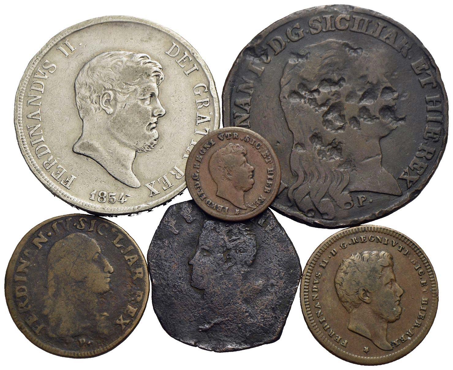 Zecche Italiane - NAPOLI - Lotto di 6 monete di cui una è un falso d'epoca (piastra 1796) -<br>MB÷BB
