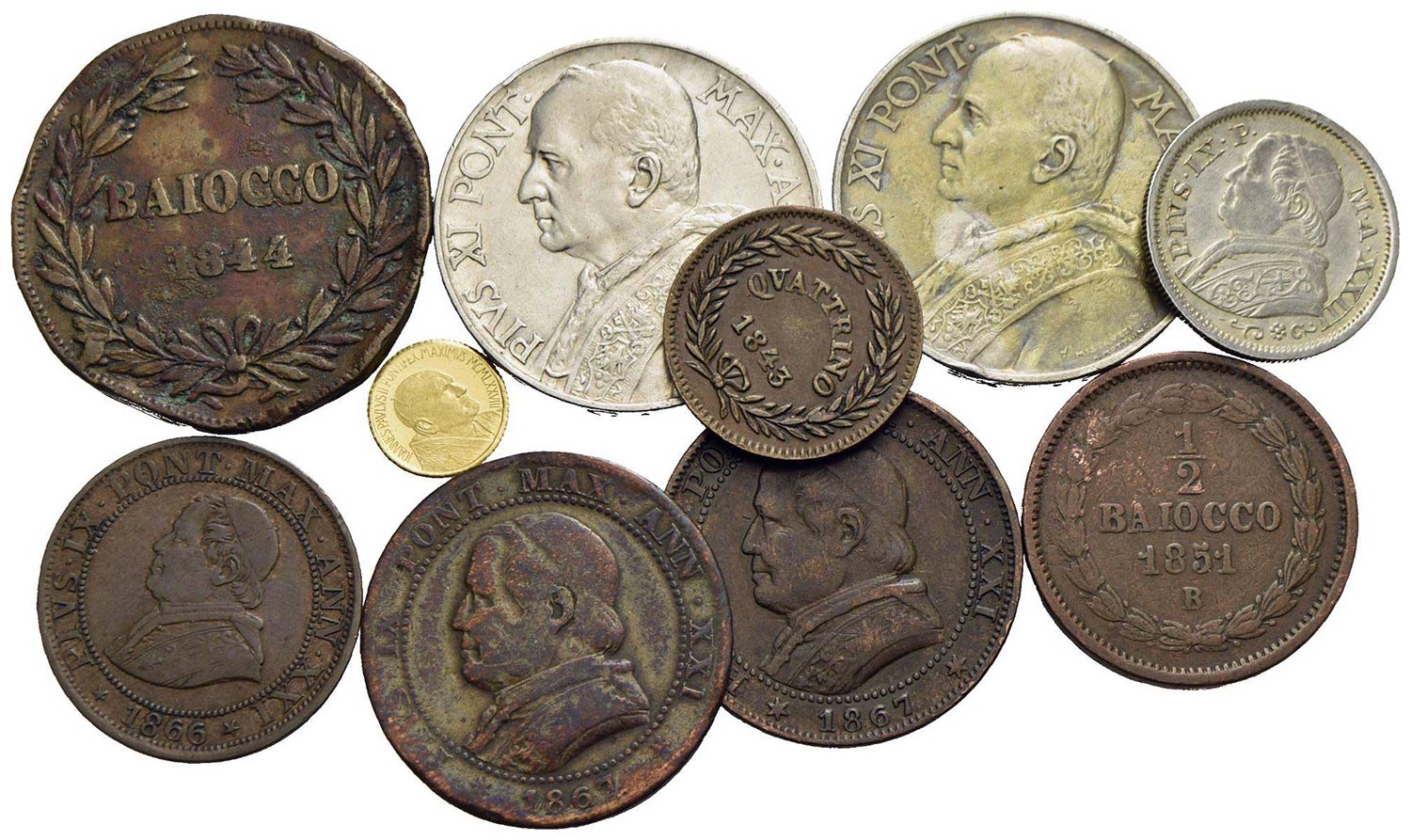 Zecche Italiane - ROMA - Lotto di 10 monete di cui 3 Ag. e 1 Ag. dorato (gr.1) -