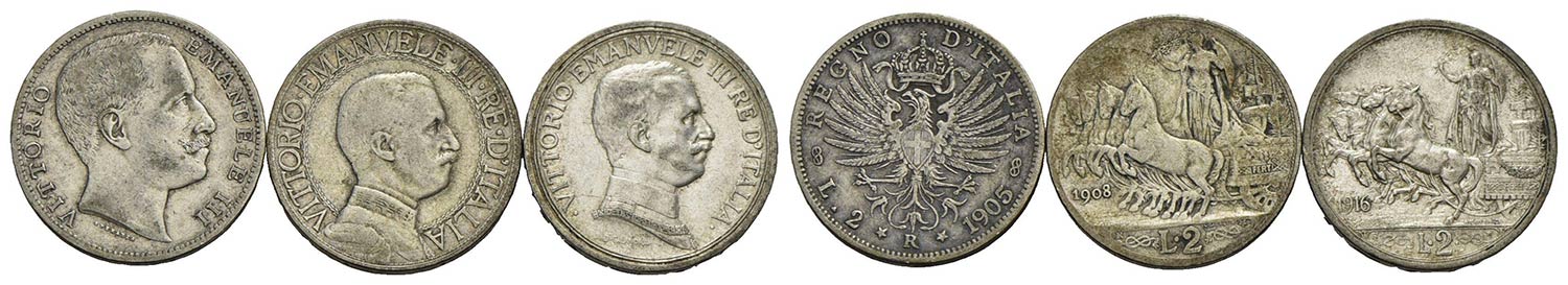 Lotto 3112 | Savoia - Vittorio Emanuele III (1900-1943) - 2 Lire - 2 Lire 1905 Araldica, 1908 Veloce e 1916 Brios