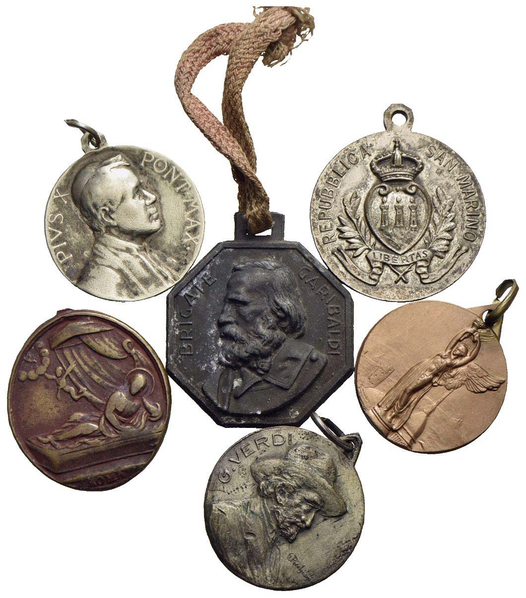 Precedente Lotto 3126 Successivo Bertolami Fine Art - Piazza Lovatelli 1, 00186 Roma Web Auction 90 - Monete e medaglie moderne Italiane ed Estere 2° Sessione domenica 27 settembre 2020 ore 12:00 (UTC +01:00) Medaglie - Lotto di 6 medagliette<br>Varie Medaglie - Lotto di 6 medaglietteVarie