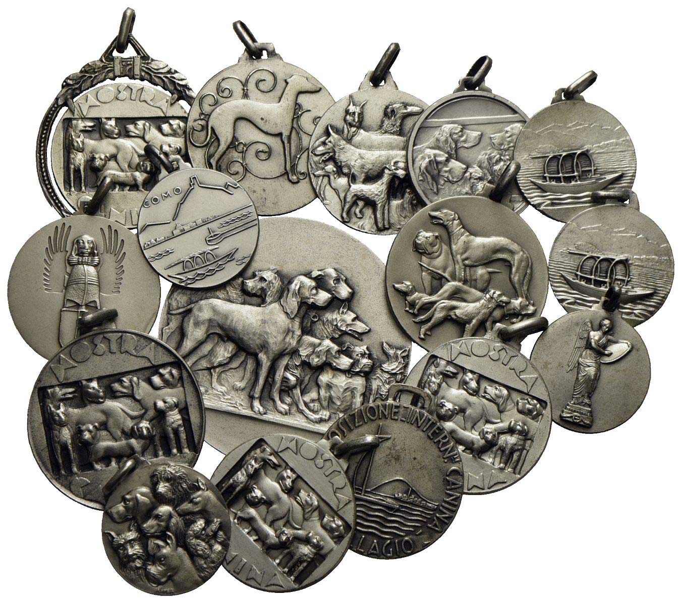 Medaglie - MOSTRA CANINA - Medaglie premio di concorsi canini svoltisi a Como, Bellagio, Brescia, Bra,Verona, Varese (gr. 215) - Lotto di 16 medaglie