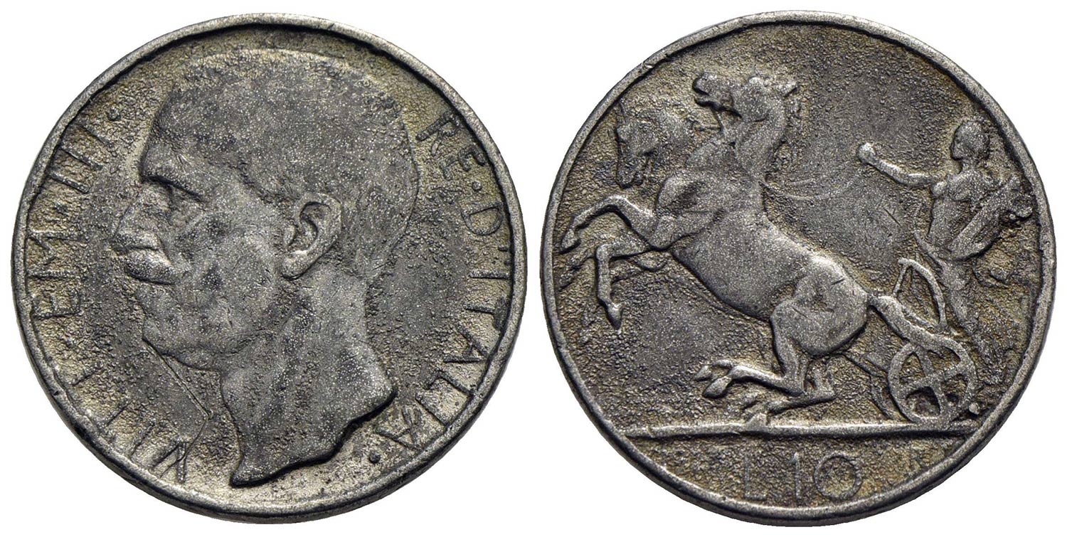 Vittorio Emanuele III (1900-1943) - 10 Lire - 1928 Biga - (AG g. 6,66) NC Falso d'epoca di peso scarso