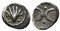 Southern Apulia, Tarentum, Hemiobol, ca. 380-325 BC. AR (g 0,22; mm 7; h 12). Shell; Rv. Double crescent; pellet above and below. Vlasto 1789-91; HNItaly 926. Scarce, good very fine