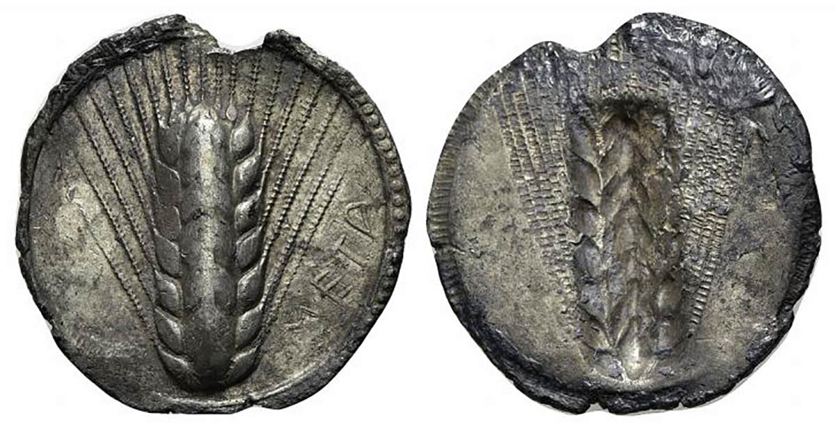 Southern Lucania, Metapontion, Stater, ca. 540-510 BC; AR (g 7,82; mm 29; h 12). META, Barley-ear; Rv. Incuse barley ear. Noe 75; HNItaly 1467. Toned, minor lack of metal, otherwise near extremely fine