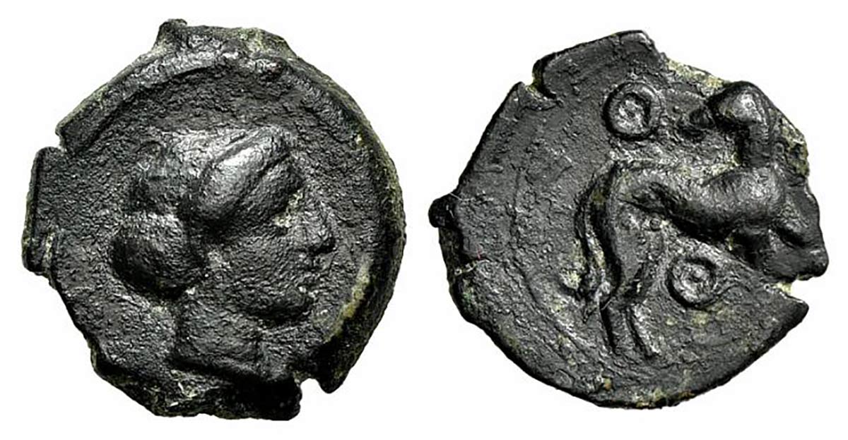 Lotto 235 | Sicily, Eryx, Hexas, ca. 410-400 BC. AE (g 3,24; mm 16,5; h 3). Female head r.; Rv. Hound advancing r., head l.; annulet above and below. CNS 12; HGC 2, 313. Very fine