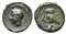 Sicily, Kamarina, Onkia, ca. 410-405 BC. AE (g 1,19; mm 10; h 12). Helmeted head of Athena l.; Rv. KAMA, Owl standing l., grasping lizard; pellet in exergue. CNS III, 32; SNG ANS -; HGC 2, 554. Very fine