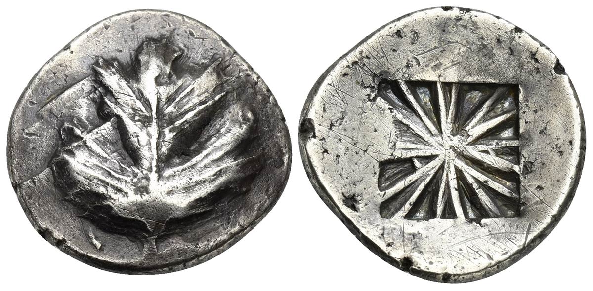 Sicily, Selinos, Didrachm, ca. 540-515 BC. AR. Selinon leaf; Rv. Incuse square divided into twelve sections. HGC 2, 1208. Good very fine
