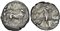 Sicily, Selinos, Tetradrachm, ca. 455-409 BC; AR (g 16,79; mm 29; h 7); Artemis, holding reins, driving quadriga r.; beside her, Apollo standing r., drawing bow; barley grain in exergue; Rv. [ΣEΛINONTION], Selinos standing l., hol