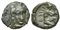 Sicily, Soloi, Tetras, late 4th century BC. AE (g 2,30; mm 13,5; h 8). Head of Athena facing slightly r., wearing Corinthian helmet; Rv. Warrior kneeling r., drawing bow. Campana 12a; CNS 5; SNG ANS 740-2; HGC 2, 1254. Very fine