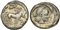 Sicily, Syracuse, Hieron I (478-466); AR Tetradrachm; ca. 478-475 BC (g 17,37; mm 24; h 9); Charioteer driving quadriga r.; above, Nike flying r., crowning horses; Rv. ΣVRAKOΣION, Diademed head of Arethusa r.; four dolphins around