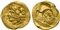 Sicily, Syracuse, 20 Litrai struck under Dionysios I, ca. 405-367 BC. AV (g 1,15; mm 12; h 3). ΣYPA, head of Herakles l., wearing lion skin, Rv.Quadripartite incuse square, Σ-Y-P-A in quarters; in deeper incuse circle in center, small female head (Arethousa?) l. Bérend pl. XI, 3; Boehringer, Münzprägungen, pl. I, 6; HGC 2, 1289. Good very fine
