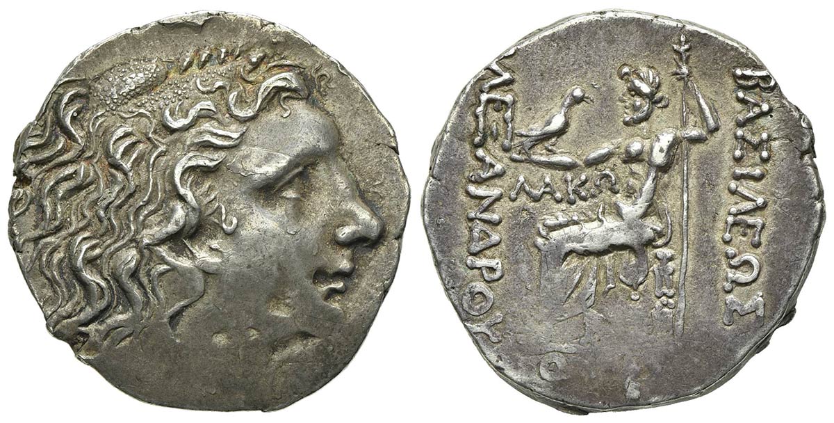 Thrace, Odessos, Tetradrachm, ca. 80-72/1 BC. AR (g 16,14; mm 28; h 12). In the name and types of Alexander III of Macedon. Head of Herakles r., with the features of Mithradates VI of Pontos, wearing lion skin; Rv. BAΣIΛEΩΣ AΛEΞANΔPOY, Zeus Aëtophoros seated l.; ΛAKΩ in l. field, OΔH in exergue. Callataÿ Group 3 (D3/R1); Topalov, Odesos 80; Price 1193. Very fine