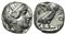Attica, Athens, Tetradrachm, ca. 454-404 BC. AR (g 16,86; mm 22; h 9). Helmeted head of Athena r.; Rv. AΘE, Owl standing r., head facing; olive sprig behind; all within incuse square. Kroll 8; SNG Copenhagen 31. Nick on obv., near
