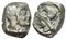 Cyprus Lapethos, Uncertain king, ca. 425 BC; AR Stater (g 10.21; mm 14.5; h 6). Helmeted head of Athena l.; Rv. Head of Herakles r., wearing lion skin, within incuse square. Zapiti & Michaelidou 3. Rare, good fine