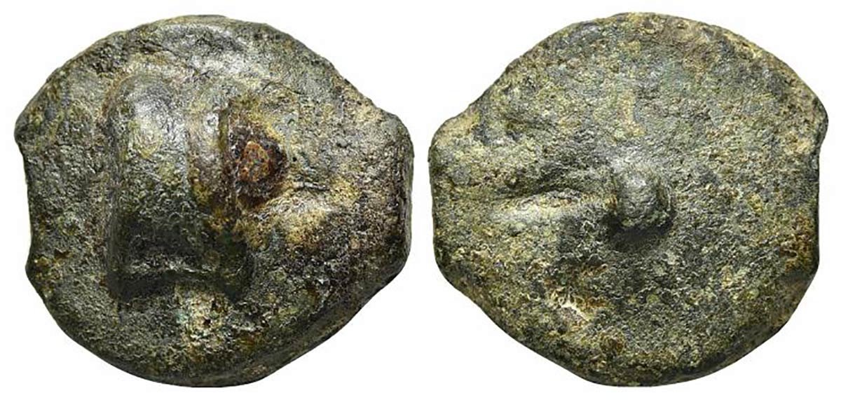 Anonymous, Rome, Cast Uncia, ca. 289-245 BC. AE (g 26,49; mm 28,5). Astragalos; Rv. Central pellet. Vecchi, ICC, 31; Crawford 14/6; HNItaly 273; RBW 6. Green patina, about very fine