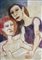 "Figure" 1970 ca. China colorata su carta applicata su tela cm. H: 40.00 L: 29.50 Firma in basso a destra. Autentica dell'autore su foto. Etichetta al retro della Galleria Cafiso (Mi) e timbro della Sant'Erasmo Club Arte (Mi). La carta ha diverse screpolature.