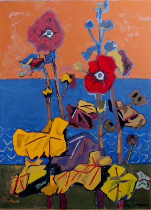 ORTEGA JOSE' (Arroba de Los Montes 1921 - Parigi 1990) "Fiori" Tecnica mista...