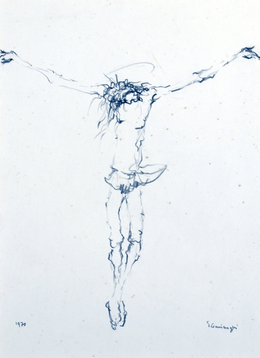 Lotto 3 | CIMINAGHI GERMANO "Cristo" 1970 Matita su carta cm. H: 37.00 L: 27.00 Firma...