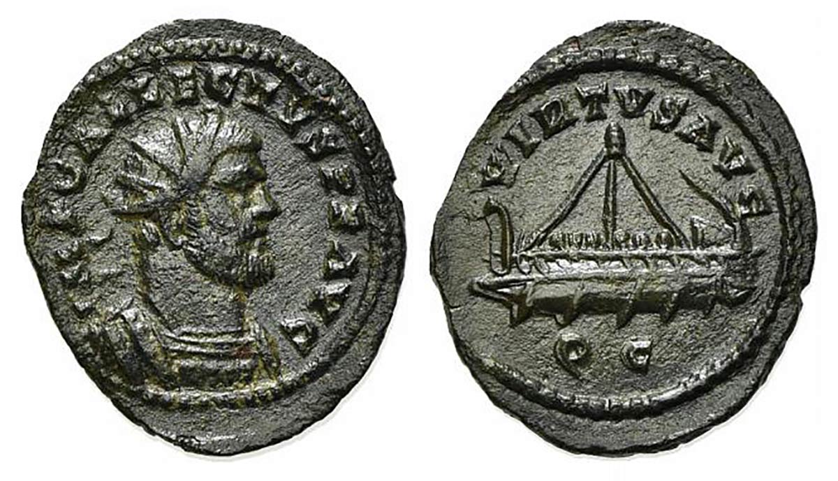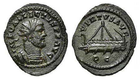 Allectus (293-296), Quinarius, ‘C’ mint (g 2,60; mm 19,5; h 6). IMP C ALLECTVS P F AVG, Radiate and cuirassed bust r.; Rv. VIRTVS AVG, Galley l.; QC. RIC 129. Good very fine