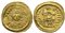 Justin II (565-578); AV Solidus (g 4,43; mm 20; h 6); Constantinople. Diademed, helmeted and cuirassed bust facing, holding globe surmounted by Victory and shield. R/ Constantinopolis seated facing on throne, head r., holding spear and globus cruciger; A//CONOB. MIBE 4; DOC 4b; Sear 345. Near very fine