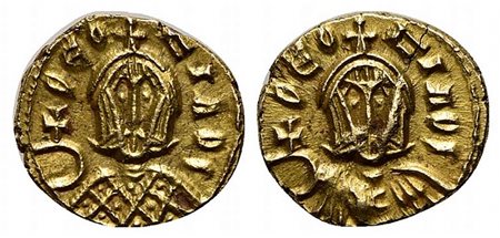 Theophilus (829-842); AV Semissis (g 1,76; mm 12; h 6); Syracuse, 831-842. Crowned facing bust of Theophilus, wearing chlamys, holding globus cruciger; Rv. Crowned facing bust of Theophilus, wearing loros, holding globus cruciger.