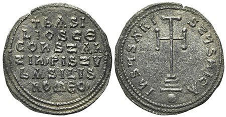 Basil I the Macedonian (867-886); AR Miliaresion (g 2.58; mm 24; h 1); Constantinople, 868-879. Cross potent set on three steps; globus below; Rv. + ЬASI/LIOS CЄ/COҺSTAҺ/TIҺ’ PISTV/ЬASILIS/ROMЄO’ in six lines. DOC 7; Sear 1708. Go