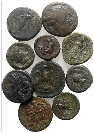 Lot of 10 Greek Æ coins, including Magna Graecia and Sicily. Lot sold as is, no return