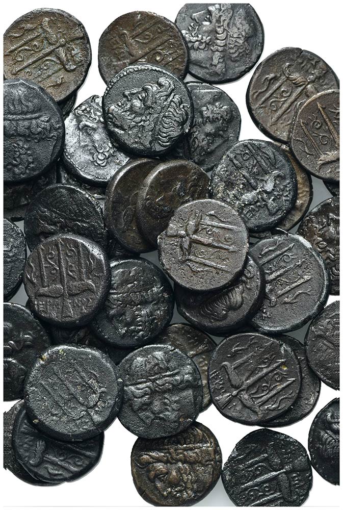 Lotto 1704 | Sicily, Syracuse, lot of 50 AE coins, including Hieron II (Head of Poseidon / Trident). Lot sold as is, no return