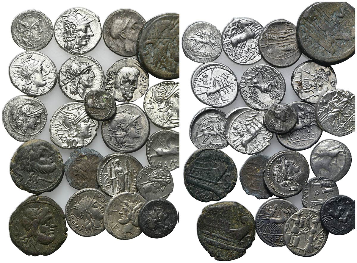 Lot of 21 Roman Republican AR and AE coins, to be catalog. Lot sold as is, no return