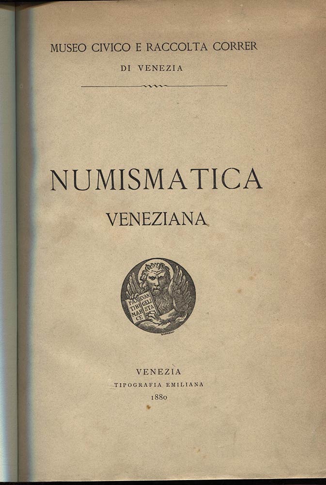 AA.VV. Numismatica Veneziana. Museo Civico e Raccolta Correr di Venezia. Venezia, 1880. Pp. 132. Ril. \ tela con tassello, ottimo stato, molto raro.