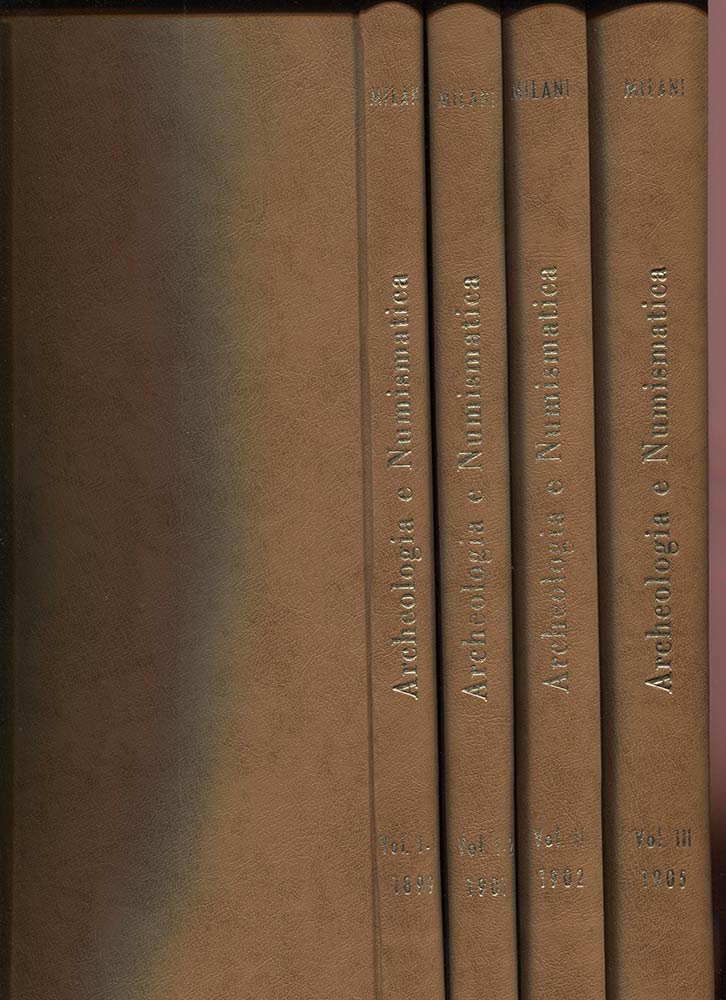AA.VV. Studi e materiali di Archeologia e Numismatica. Firenze, 1899 – 1905. 4 vol. tutto il pubblicato, completo. Tavv, e illustrazioni nel testo. Ril. piena pelle con scritte, ottimo stato, molto raro. Importanti articoli.