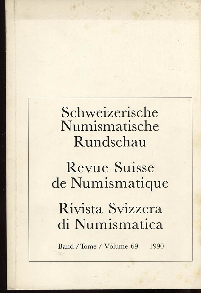 AA.VV. Revue Suisse de Numismatique. Tome 69, 1990. pp. 185, tavv. 36,, + ill. nel testo. Importanti lavori. Ril. ed. Buono stato.