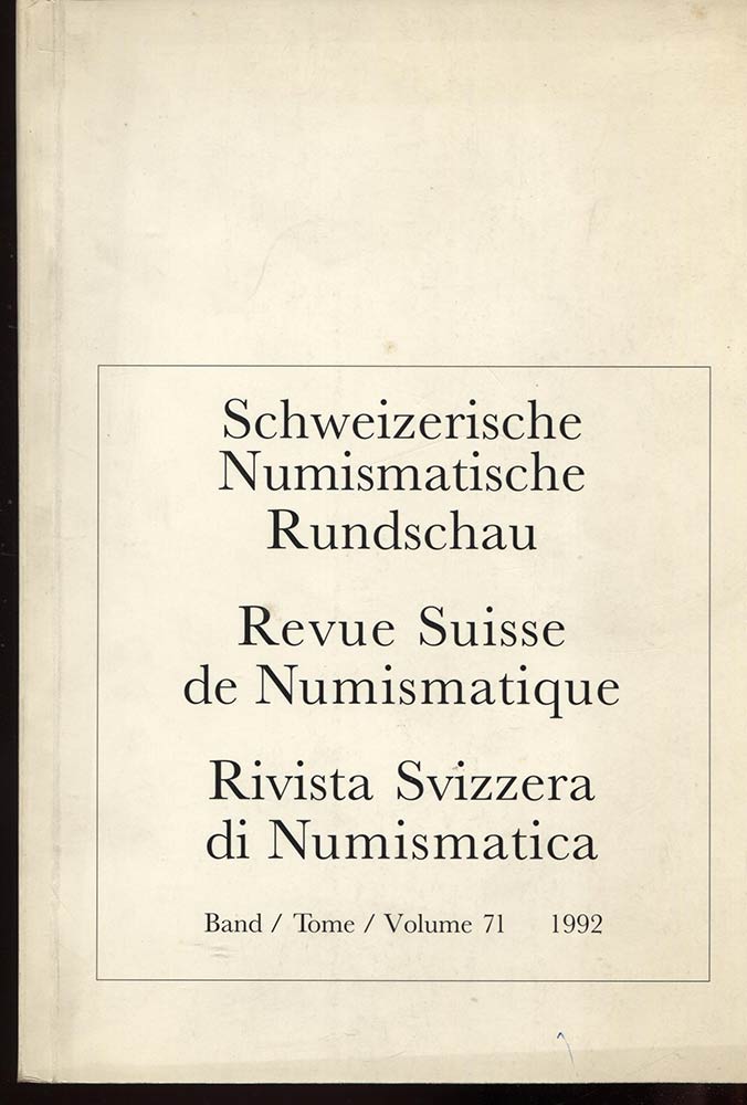 AA.VV.Revue Suisse de Numismatique. Tome 70, 1991. pp. 106, tavv. 15, + ill. nel testo. Importanti lavori di numismatica bizantina Ril. ed. Buono stato
