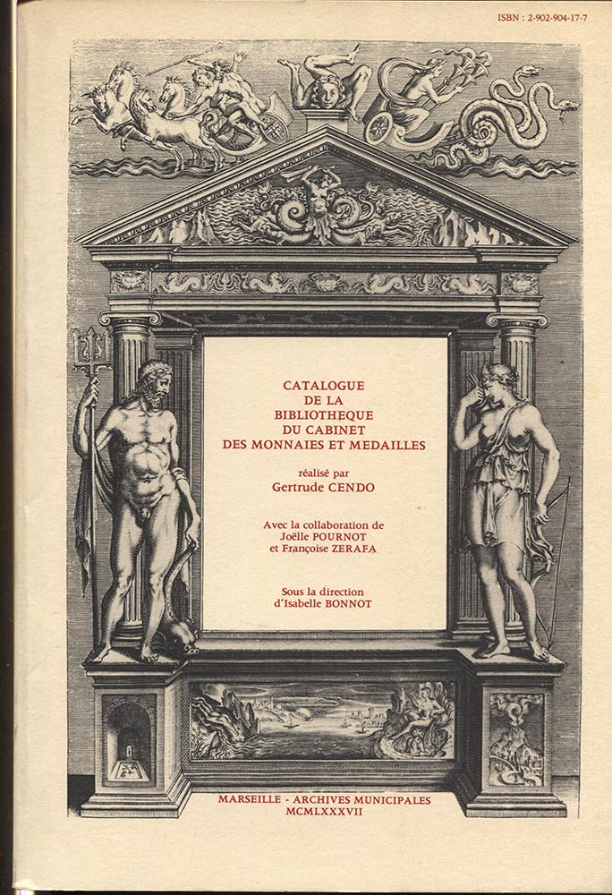 AA.VV. Catalogue de la Bibliotheque du Cabinet des monnaies et medailles ( de Marseille). Marseille , 1987. Pp. 221, ill. nel testo. Ril. ed. Buono stato.