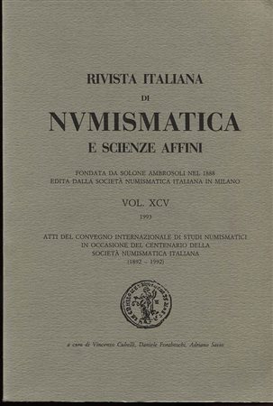 AA.VV. Rivista italiana di numismatica. vol. XCV. Moneta e non Moneta. Atti del convegno internazionale di studi numismatici… Milano, 1993. Pp. 683, ill. e tavv. el testo. ril. ed. buono stato.