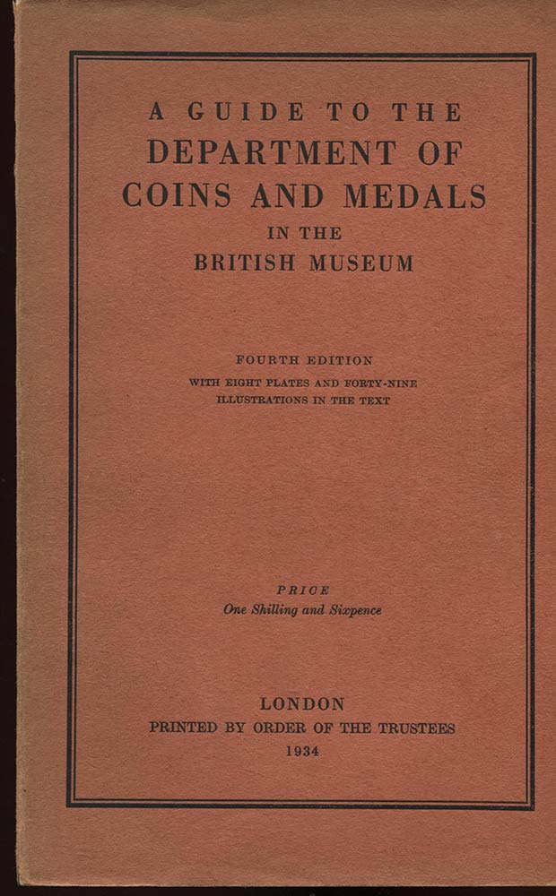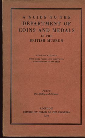 ALLAN J. – A guide to the Department of coins and medals in the British Museum. London, 1934. Pp. 99, tavv. 8 + ill. nel testo. ril. ed. buono stato.