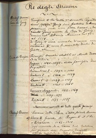 ANONIMO. – Re degi Armeni. Manoscritto S.L. 1875. Pp.7. brossura ed. Buon stato, raro.