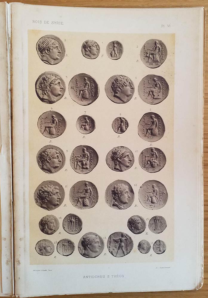 Babelon M.E. Catalogue des Monnaies Grecques de la bibliotheque Nationale. Les Rois de Syrie D' Armenie et de Commagene. Paris Chez C. Rollin & Feuardent 1890. Brossura ed. pp. 268, tavv. XXXII in b/n, ill. in b/n. 3 tavv. Staccate. Buono stato.