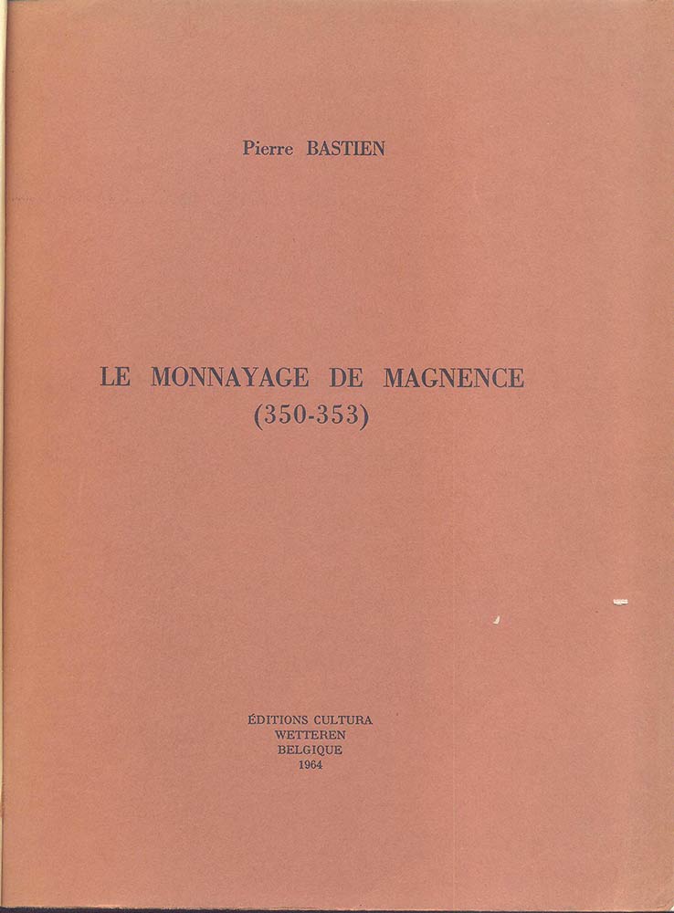 BASTIEN P. - Le monnayage de Magnence 350 - 353. Wetteren, 1964. pp. 236, tavv. 18. ril. \ tela con scritte, ottimo stato.