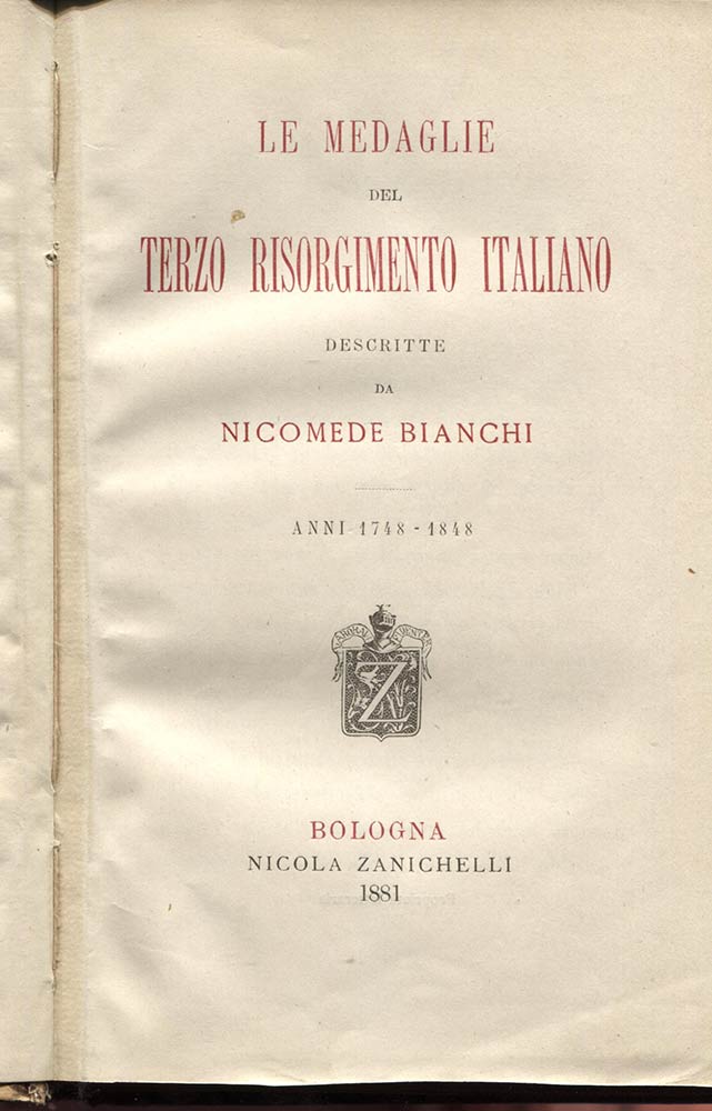 BIANCHI N. – Le medaglie del terzo Risorgimento italiano. Bologna, 1881. Pp. 339. Ril. cartonata, dorso sciupato, buono stato. Molto raro .