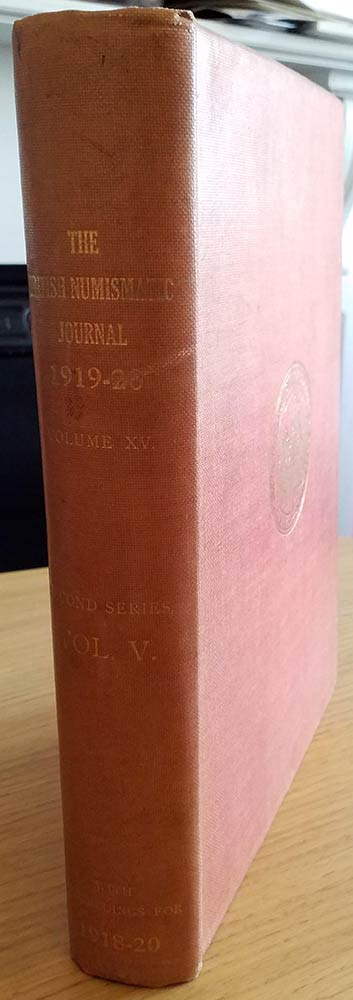 British Numismatic Journal 1919-20. Including the Proceedings of the British Numismatic Society for the year 1918-20 Volume XV – Second Series Vol. V. Harrison and Sons 1921.Tutta Tela con titolo in oro al dorso, pp. 379, ill. in