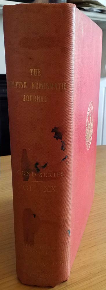 British Numismatic Journal 1929-30. Including the Proceedings of the British Numismatic Society for the year 1929-30 Volume XX – Second Series Vol. X. Harrison and Sons 1932.Tutta Tela con titolo in oro al dorso, pp. 454, ill. in