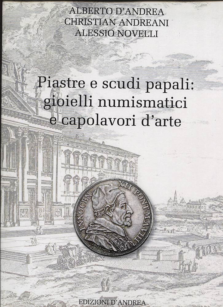 D’ANDREA A – ANDREANI C. – NOVELLI A. – Piastre e scudi papali: gioielli numismatici e capaolavori d’arte. Acquaviva Picena, 2016. Pp. 206, ill. nel testo. Ril. ed. Ottimo stato, importante.