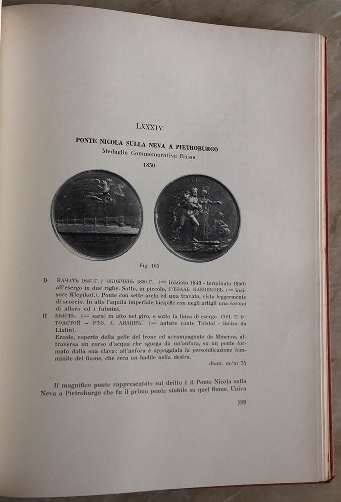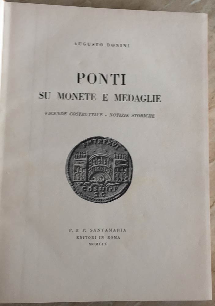 Donini A. Ponti su Monete e Medaglie, Vicende Costruttive – Notizie Storiche. P.&P. Santamaria MCMLIX. Tela ed. con titolo in oro al dorso, pp. 389, ill. in b/n. Buono stato